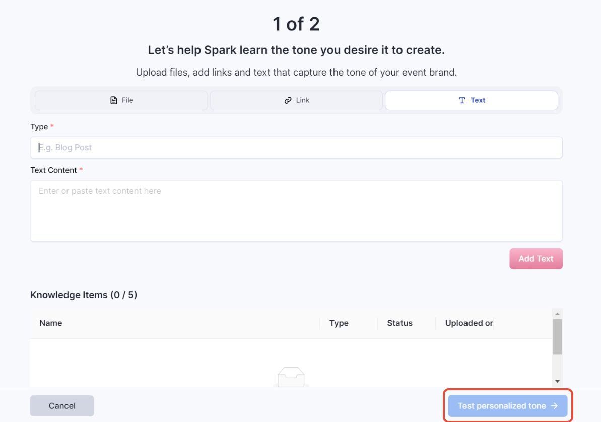 Upload files or documents that reflects the tone of your event, brand, or communication style.